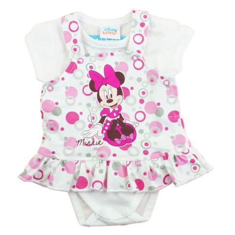 2 részes baba nyári szettt kantáros szoknyával, Minnie egér mintával Eredeti Disney termék A kis hercegnők igazi rajongói lesznek ennek a 2 részes Disney Minnie szetthez, amely csábítóan mosolyog a szoknya elején. A nyári szett eredeti Disney termék, és