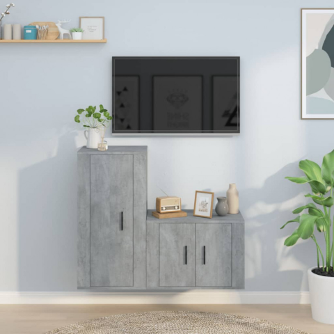 Teljes 2-részes betonszürke szerelt fa TV-szekrényszett termékleírás