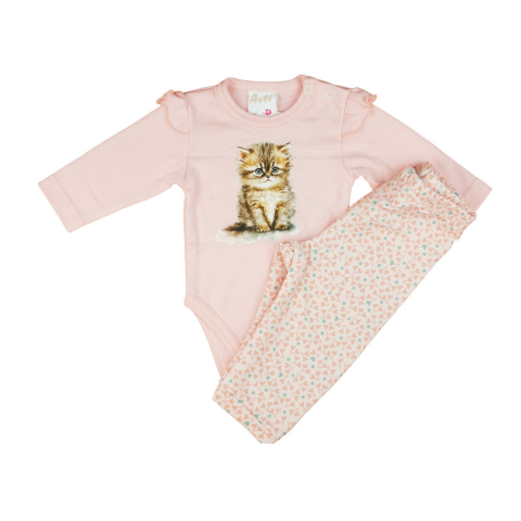 2 részes kislány szett Cicás mintával babaruha szett árgrafikon
