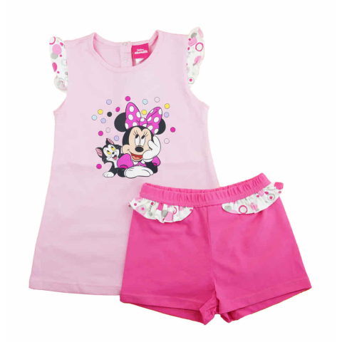 2 részes nyári szett cicás Minnie mintával Kényeztesse kislányát ezzel a 2 részes nyári szettel, amely cicás Minnie mintával díszített. A fodros ujjú póló és fodros derekú nadrág együttese garantáltan a nyár slágere lesz, melyben gyermeke a legmelegebb n