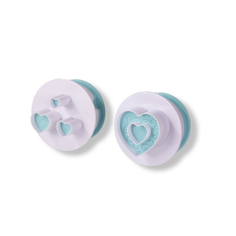 Készíts Te is szuper díszeket tortáidra ezzel a 2 részes rugós különböző méretű szívek fondant kiszúró készlettel!