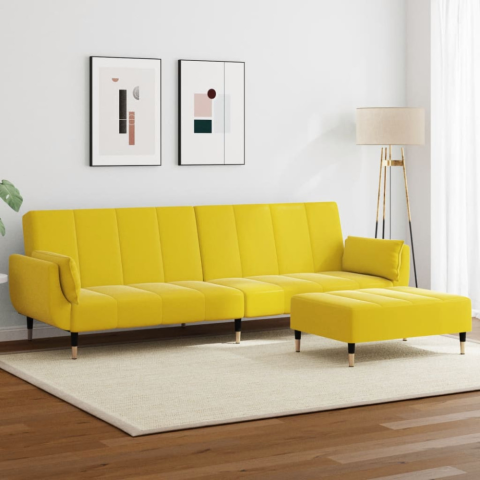 Teljes 2 személyes sárga bársony kanapéágy lábtartóval termékleírás