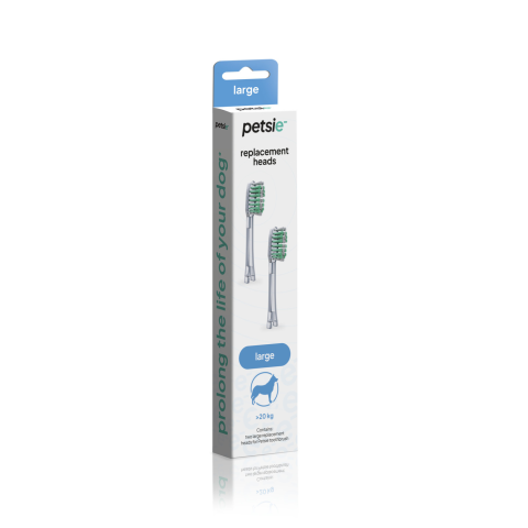 Replace the brush heads regularly to maintain your dog’s health and keep their teeth clean. What’s included?2 Petsie toothbrush replacement heads in the selected size