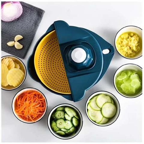 1 kép 2in1 konyhai szeletelőkészlet és giroszkópos szűrőtál - multifunkciós előkészítő szett gyümölcsökhoz és zöldségekhez
