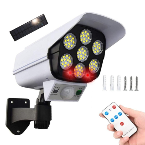 1 kép 2in1 Napelemes Biztonsági Álkamera ,Mozgásérzékelős LED Lámpa Távirányítóval