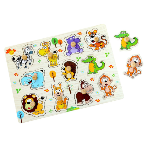 Krásne vkladacie puzzle na pevnej doske prináša kúzlo života v divočine priamo do detských rúk! Deti sa môžu zoznámiť so zvieratkami na safari prostredníctvom 11 vkladacích dielikov, ktoré je možné ľahko uchopiť. Skladačka podporuje rozvoj jemnej moto