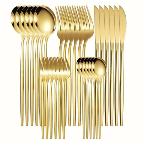 1 kép 30 darabos Aranyozott Rozsdamentes Acél Evőeszköz Készlet 601099648605235