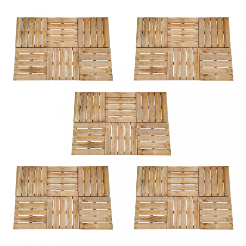 Helyezzen gyönyörű fából készült padlót kertjébe, teraszára vagy a medence mellé 30 darabos burkolólapszettünk felhasználásával. A padlólapok impregnált fenyőfából készültek, ami strapabíró, időjárásálló és nem korhad. A fa gyönyörű erezete rusztikus bájt