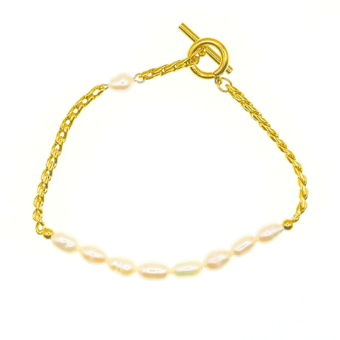 316L csavart láncos gyöngy karkötő - 18k arany bevonattal