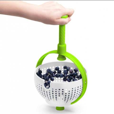 Moss, száríts gyümölcsöket és zöldségeket egyszerűen! A fogantyú megnyomásával a kosár elfordul, ezáltal a felesleges víz gyorsabban lecsöpög az alapanyagokról. Mivel a termék tökéletesen illeszkedik a mosogatóba, ezért azt is elkerülheted, hogy a konyhap