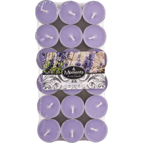 36 darabos teamécses levendula illatú, 23 cm magas, 4 óra égési idővel.