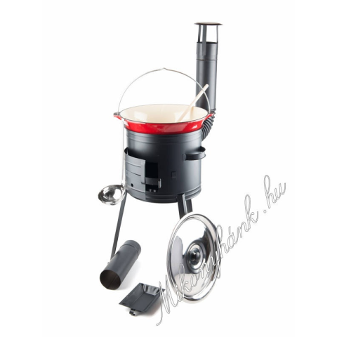 1 kép 39cm magas bográcsház+16 literes zománcos öntöttvas bogrács(10részes)
