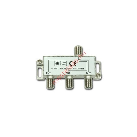 Antennajel elosztó,három irányú Átviteli frekvencia: 5-1000 MHz Csillapítás: 5,3 dB (szimmetrikus)