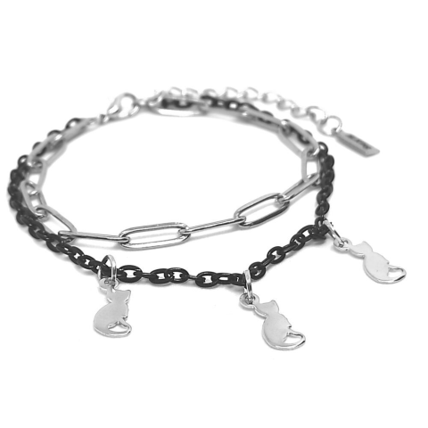 1 kép 3 Cicás charmos dupla karkötő, ezüst-fekete színű