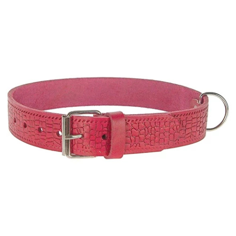 3 cm széles pikkelymintás világos piros bőr nyakörv