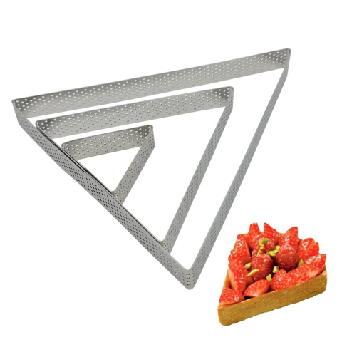 3 darabos, különböző méretű, háromszög alakú lyukacsos fém desszertgyűrű, tart gyűrű melynek segítségével Te is egyszerűen tudod elkészíteni a tésztából készült kosárkákat, melyeket később megtölthetsz krémekkel, zselével vagy éppen gyümölcsökkel. Tulajd