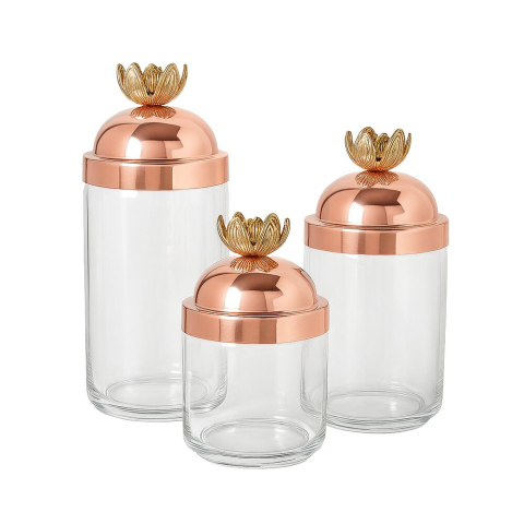 1 kép 3 darabos prémium tárolóedény készlet fedéllel, Ruffoni, Historia kollekció, réz