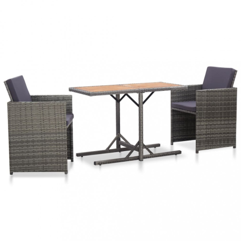 Teljes 3 darabos szürke polyrattan bisztrószett párnákkal termékleírás