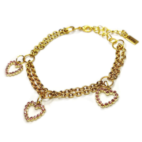 1 kép 3 pink kristály szív charmos arany színű dupla karkötő