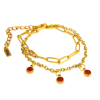 1 kép 3 Piros kristályos charmos rozsdamentes acél dupla karkötő, arany színű