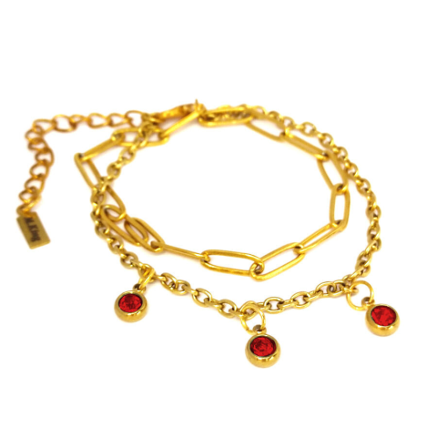 1 kép 3 Piros kristályos charmos rozsdamentes acél dupla karkötő, arany színű