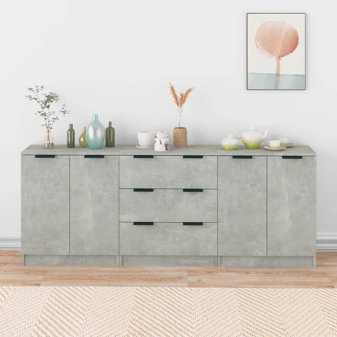 1 kép 3 részes betonszürke szerelt fa tálalószekrény
