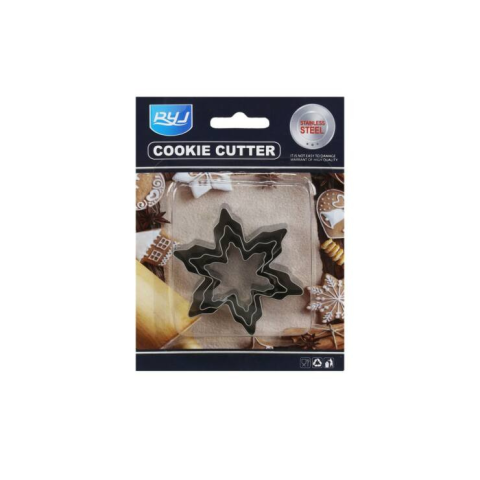Különleges téli hangulatot varázsolhatsz az ünnepi asztalra a hópehely sütikiszúró készlet segítségével. A 3 darabos szettben különböző méretű fém kiszúrókat találsz (3,5 cm, 5 cm és 7 cm), így könnyedén elkészítheted a kisebb és nagyobb hópehely formájú süteményeket is.