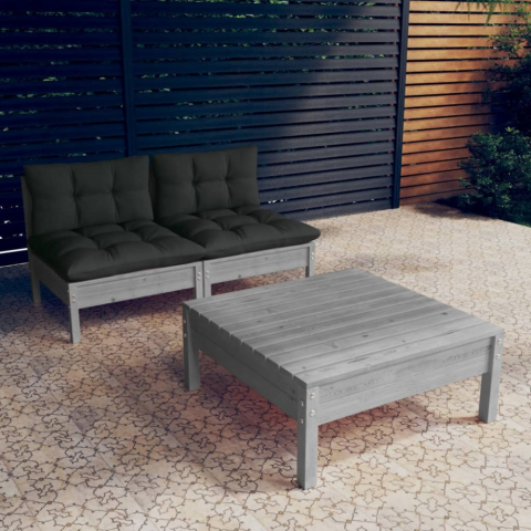 Teljes 3 részes fenyőfa kerti ülőgarnitúra antracitszürke párnákkal termékleírás