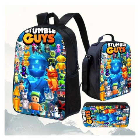 3 részes Stumble Guys hátizsák szett – Iskolatáska, ebédtáska és tolltartó VP3581614Ez a vidám, színes Stumble Guys mintával díszített 3 részes táskaszett ideális választás iskolába, utazáshoz vagy mindennapi használatra. A nagy kapacitású hátizsák, a praktikus ebédtáska és a kompakt tolltartó együtt biztosítják a kényelmes tárolást és a stílusos megjelenést.A készlet tartalma és méretei:Hátizsák – 42 × 29 × 13 cmEbédtáska – 24 × 18 × 7,5 cm