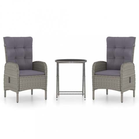 Teljes vidaXL 3 részes szürke polyrattan és üveg kerti bisztrószett termékleírás