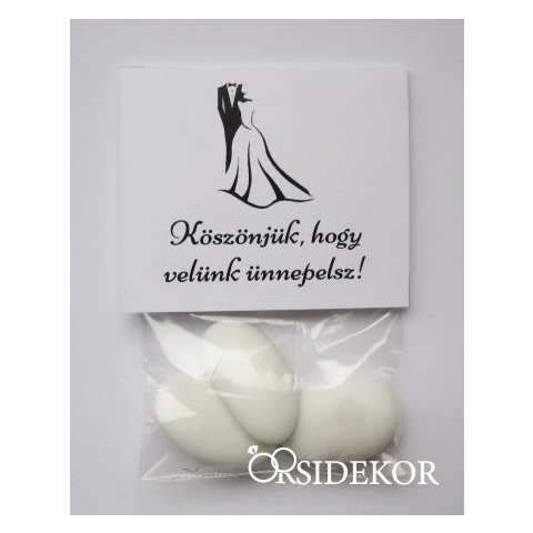 Ehető köszönetajándékkal nem lehet mellélőni! A cukrozott mandulákat kis zacskóba csomagoljuk és egyedi címkével látjuk el. A grafika színét igényednek megfelelően választhatod, hogy biztosan harmonizáljon az esküvő színvilágával! Időt és pénzt takaríth