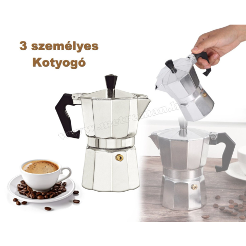 Ébredjen minden reggel az igazi olasz kávéházak hangulatára 3 csészés kotyogós kávéfőzőnk segítségével! Ez a minőségi alumínium kávéfőző a kotyogó kávéfőzők klasszikus dizájnját hozza, így biztosítva a tökéletes eszpresszó élményt otthonában. Gyors és egy