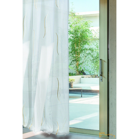 Teljes (3 szín) 61149 Hullám mintás voile fényátersztő függöny-fehér alapon arany termékleírás