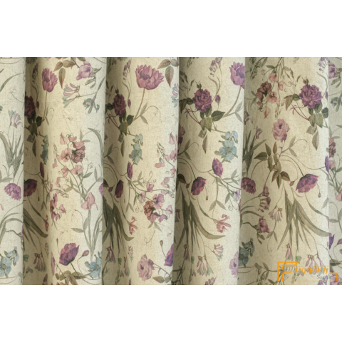 Teljes (3 szín) Lujan dekor függöny - Natúr alapon lila virág mintás termékleírás