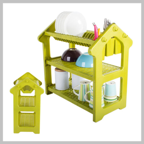 3 szintes állványos edényszárító 07108A konyhai szárítógép kiváló minőségű anyagokból készült, ellenáll a sérüléseknek és a nedves edények tárolásából származó nedvesség hatásainak.A stabil konstrukció kényelmes, nagy vályútalppal gondoskodik arról, hogy a víz ne csöpögjön a munkalapra és ne károsítsa a bútorokat.Az álló edényszárító minden konyha elengedhetetlen kelléke. Nagyon praktikus, nagy mennyiségű tányér, tál és pohár elfér benn