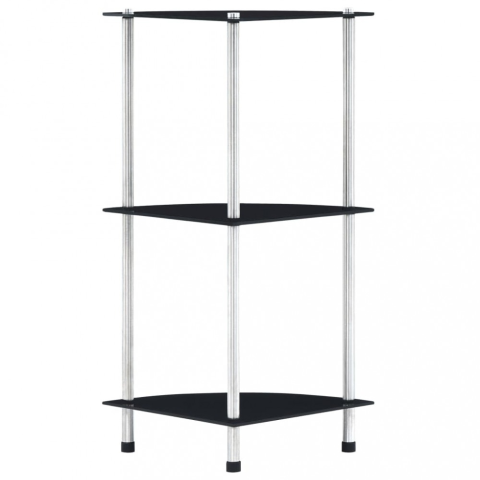 Teljes 3 szintes fekete edzett üveg polc 30 x 30 x 67 cm termékleírás