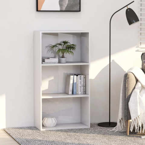 3-szintes fényes fehér forgácslap könyvszekrény 60x30x114 cm