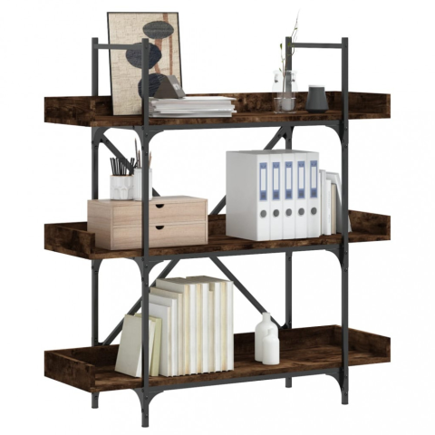 Teljes 3-szintes füstös tölgy szerelt fa könyvespolc 100x33x108,5 cm termékleírás