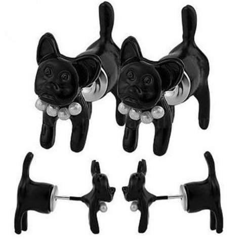 Fekete színű 3D francia bulldog fülbevaló, amely tökéletes bulldog ajándék minden kutyarajongónak és egyedi stílust keresőknek