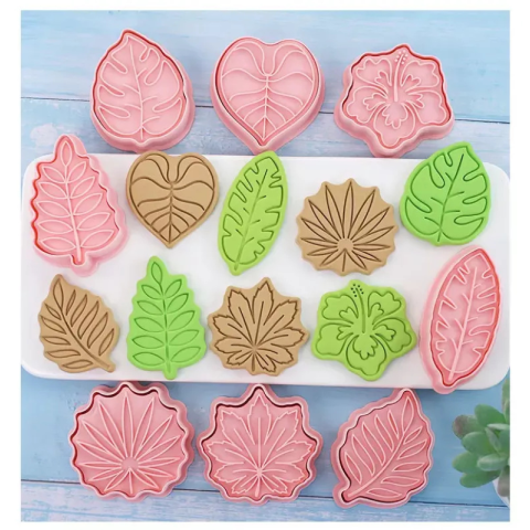 3D Falevelek süteménykiszúró és nyomda készlet 8 + 8 darab