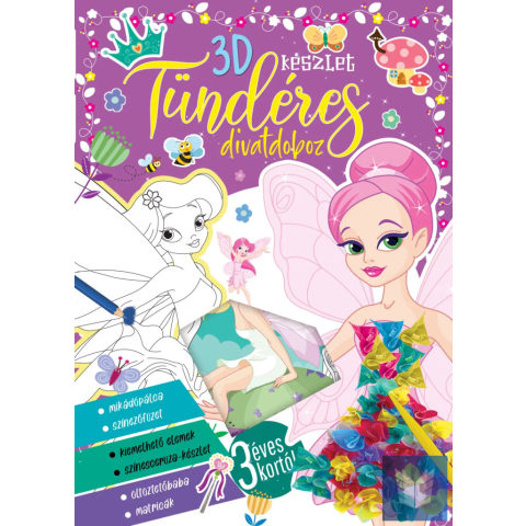 A 3D készlet – Tündéres divatdoboz egy kreatív foglalkoztató, amely lehetővé teszi a gyerekek számára, hogy saját tündéres divatot alkossanak. A csomag tartalmaz egy öltöztetőbabát, színezőfüzetet, matricákat és kiemelhető elemeket, amelyeket 3D technikáv