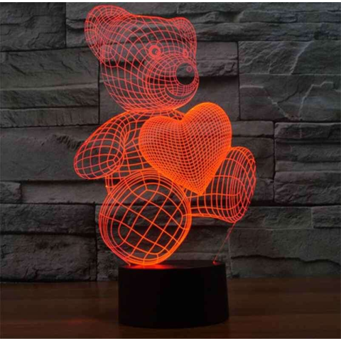 3D LED lámpa - Maci szívvel