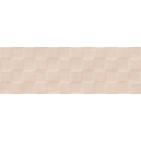 Beltéri, világos barna, matt, textil hatású, 3D-s fali csempe, mérete: 20 cm x 60 cm, vastagsága: 0,9 cm.