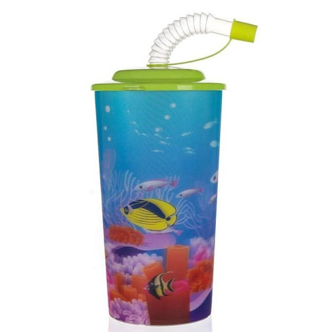 1 kép 3D SEA szívószálas pohár tetővel 470 ml