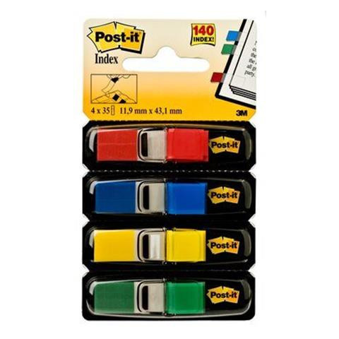 Jelölőcímke, műanyag, 4x35 lap, 12x43 mm, 3M POSTIT, vegyes - bármilyen dokumentum színkódos rendszerezésére alkalmas - írható