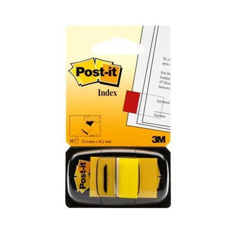 1 kép 3M POSTIT Jelölőcímke, műanyag, 50 lap, 25x43 mm, 3M POSTIT, sárga