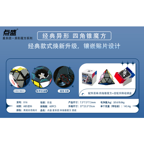 3x3 kocka 4-Corner Hexagonal Dipyramid V2 (Tiled) Verseny kocka Pyraminx Forgatós Logikai Játék – 3D Fejtörő a Rubik-kocka nyomdokainTedd próbára az elméd ezzel az izgalmas, forgatható logikai játékkal a 3x3 kocka 4-Corner Hexagonal Dipyramid V2 (Tiled). A klasszikus Rubik-kocka által inspirált fejtörő kiváló szórakozást és agytornát kínál minden korosztály számára. Fejleszti a gondolkodást:Serkenti a problémamegoldó képességet, logikus gondolkodást és tér