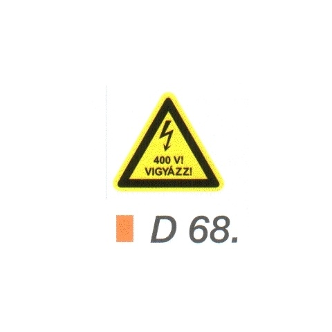 400 V! Vigyázz! Cikkszám: D68 Kivitel: Öntapadós Méret: 100mm élhosszú háromszögben