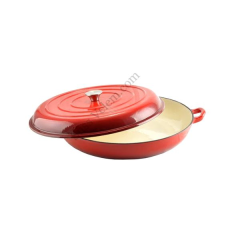 1 kép 40 cm-es zománcozott öntöttvas serpenyő, szeletsütő lábas fedővel Perfect Home