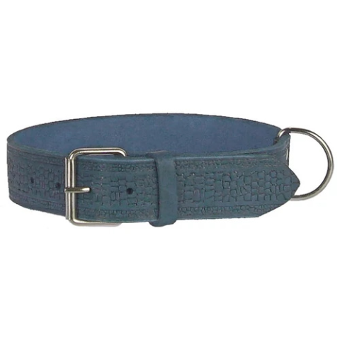 4 cm széles pikkelymintás középkék bőr nyakörv